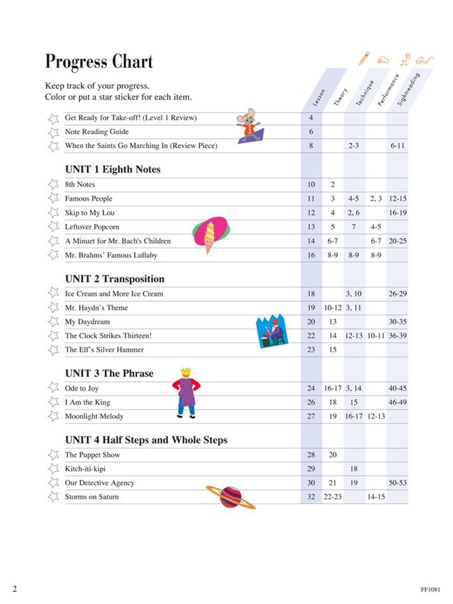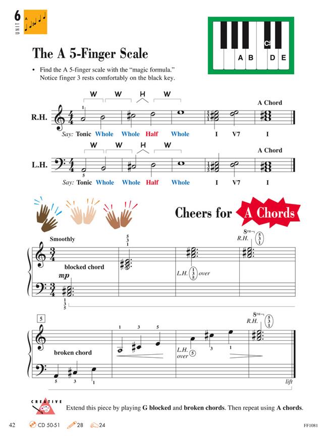 The 2nd Edition Level 2A Lesson Book follows Piano Adventures Level 1. The book opens with a Note Reading Guide and an introduction to eighth note rhythm patterns. Students work with 5-finger transposition, functional harmony, andmusical phrases. Exploration of C, G, D and A major and minor 5-finger positions builds on intervallic reading skills that were introduced in the earlier level. Appealing repertoire reinforces key concepts and encourages studentsto explore musical expression through varied dynamics and tempos. Selections include well-known classics from the great composers and original compositions.