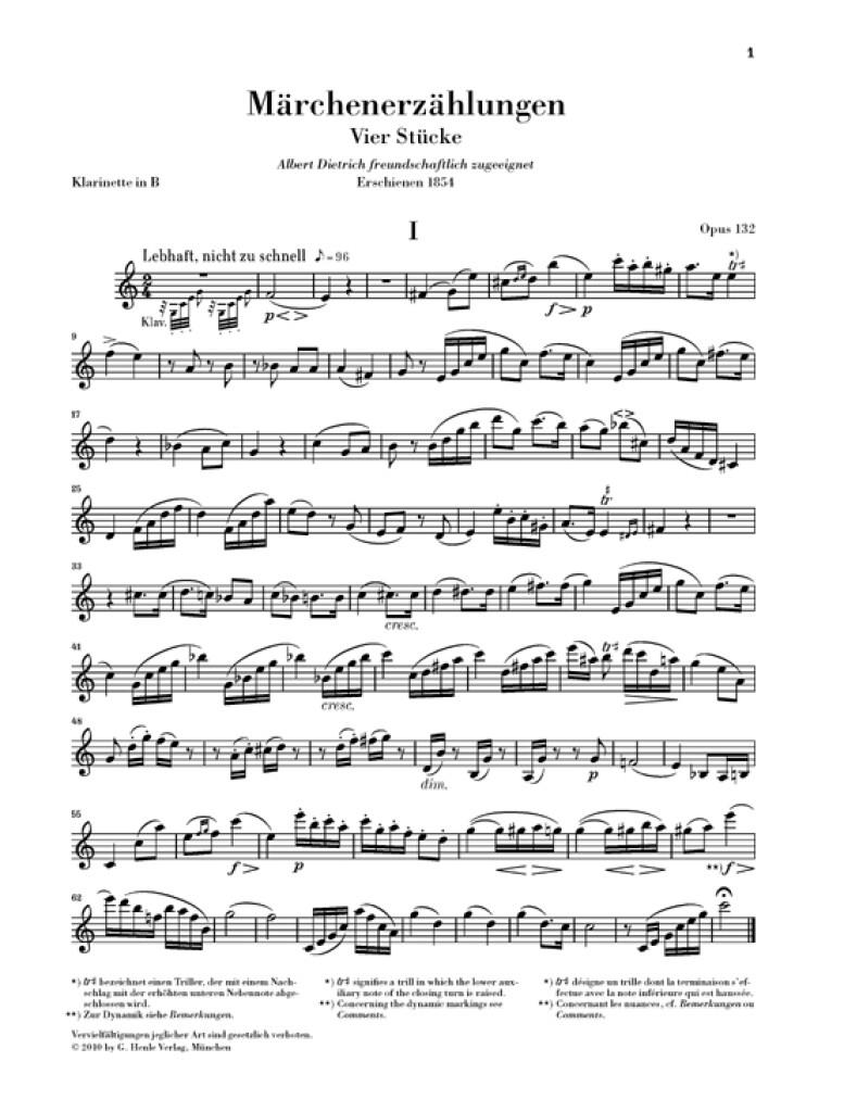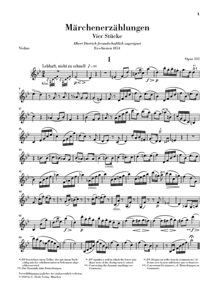 Aucun poème romantique, aucun personnage de conte particulier n’a incité Schumann à écrire cette composition. On peut supposer aujourd’hui que le titre de ces pièces tout d’abord intitulées «Romanzen» voulait seulement évoquer un monde poétique, féérique. Probablement inspiré par le «Kegelstatt-Trio» K. 498 – «Trio des Quilles» – de Mozart, Schumann avait nourri intensivement ce projet d’une oeuvre écrite pour cette formation particulière réunissant piano, clarinette et alto, et dont l’effet singulier l’enthousiasmait. Cependant, il fallut encore près de trois ans avant qu’il n'envoie à un éditeur ces «pièces écrites avec un bon plaisir». La première édition comportaitalternativement à la clarinette une partie de violon. Comme cette partie a été autorisée par Schumann, elle est jointe également à notre édition Urtext. ?