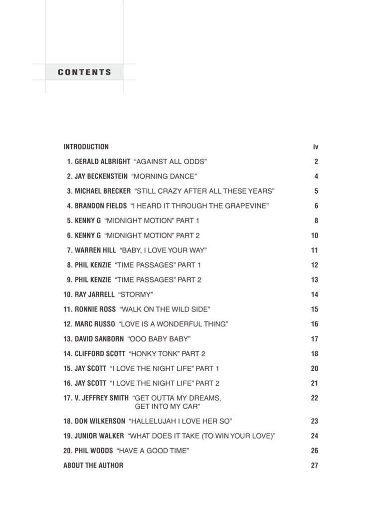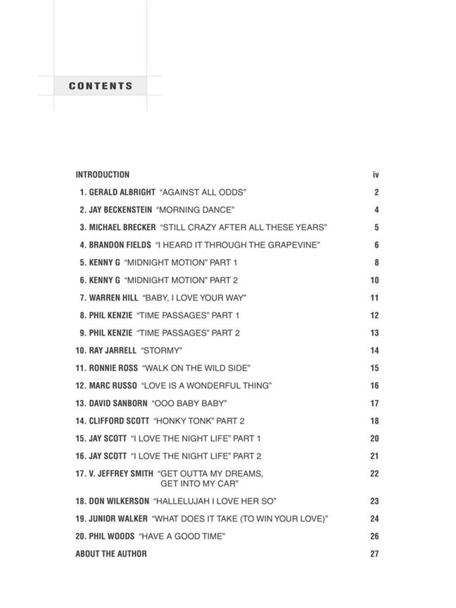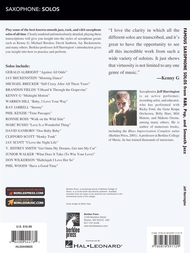 Effectuer des solos les plus connus de saxo de tous les temps! Jouer ce bien rendue et méticuleusement détaillé transcriptions vous donnera un aperçu des styles de grands saxophonistes comme Michael Brecker, Kenny G, David Sanborn, Jay Beckenstein, et bien d'autres. L'introduction Berklee professeur Jeff Harrington propose des conseils sur la façon de pratiquer et exécuter.