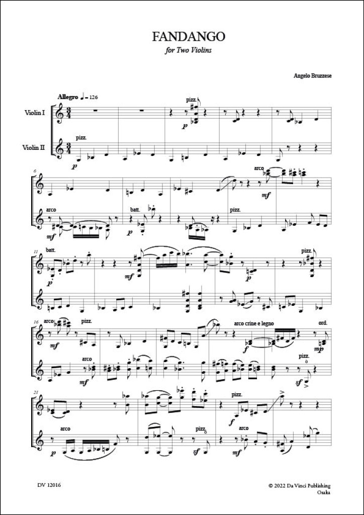 Fandango, for 2 Violins BRUZZESE ANGELO