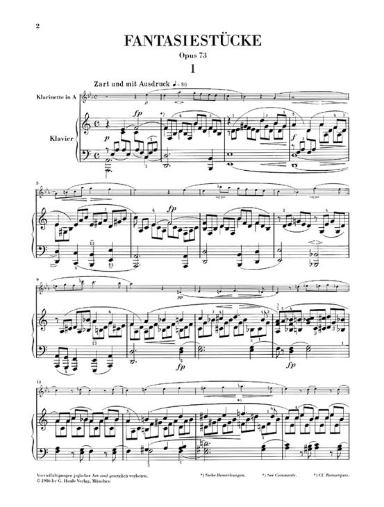 Fantasy Pieces for Piano and Clarinet (or Violin or Violoncello) op. 73 (version for Violoncello)