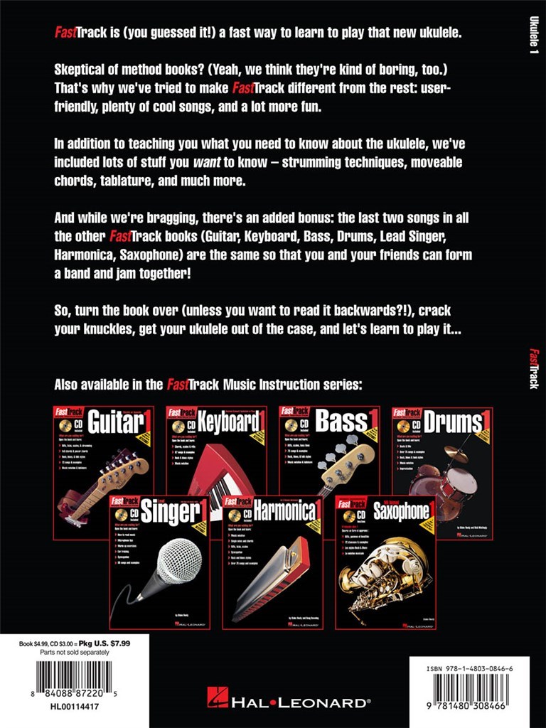 Fast Track: Ukulele - Book1 propose 65 chansons et des exemples pour vous permettre de démarrer sur le uke.