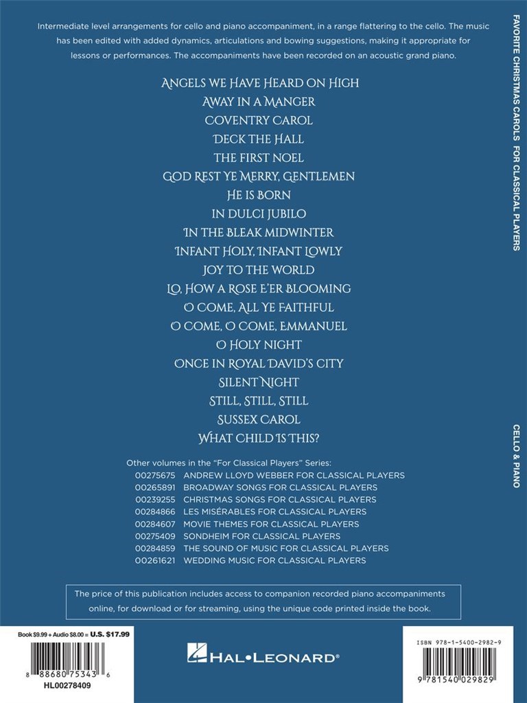 Twenty favorite Christmas carols arranged for solo instrumentalists with online accompaniments available for download or streaming.
