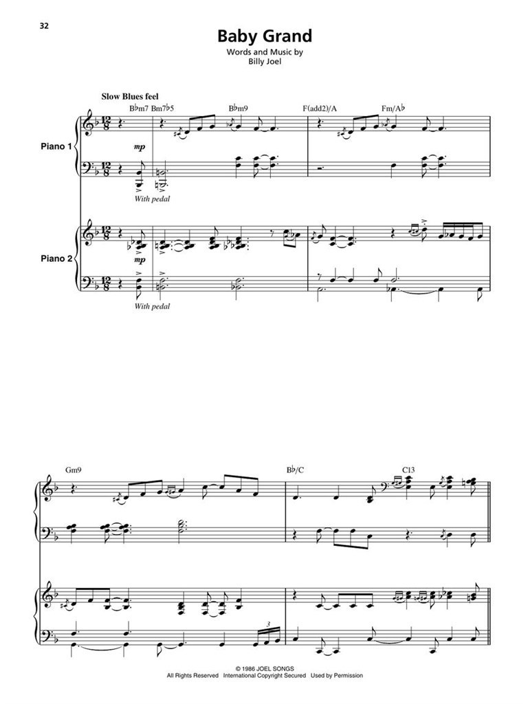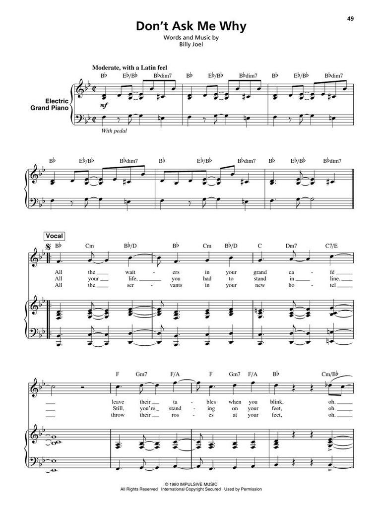 Partitions pour piano, voix (paroles et ligne mélodique) et guitare (symboles d'accords) de 18 chansons de Billy Joel.