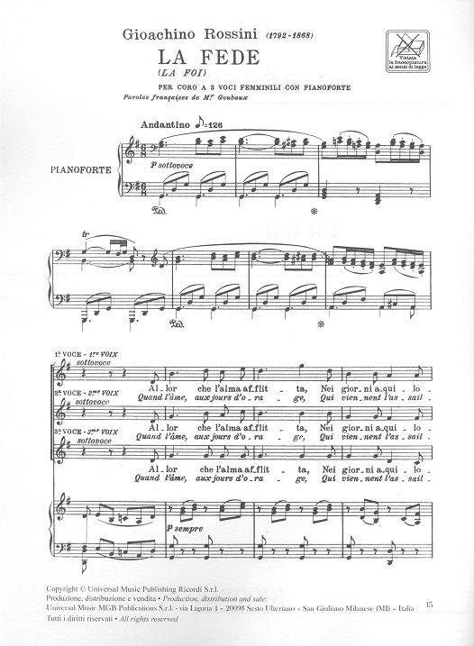 Fede Per Coro A Tre Voci Femminili Con Pianoforte ROSSINI GIOACHINO