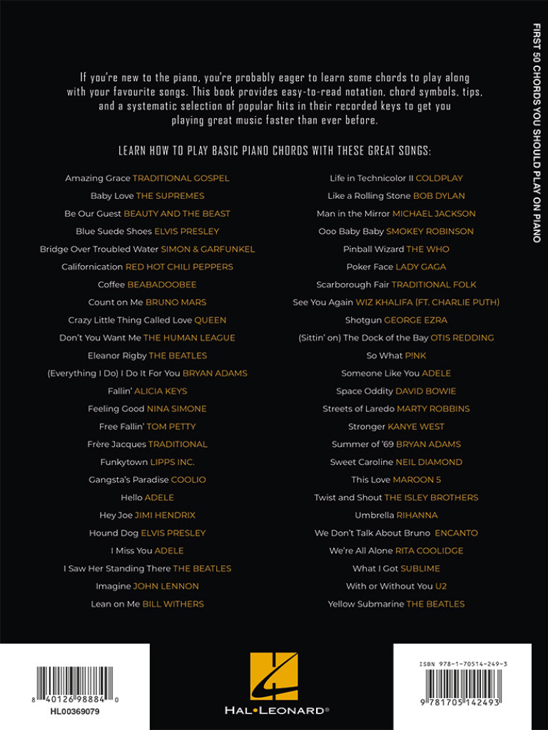 First 50 Chords You Should Play on Piano will get you playing basic piano chords to the music you love