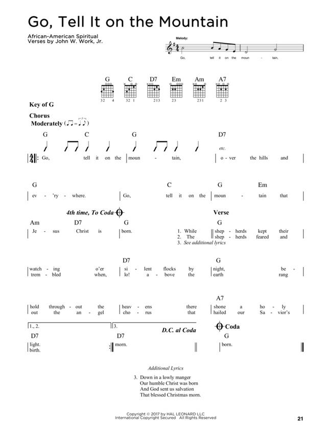 Accessible, must-know Christmas songs are included in this one-of-a-kind collection arranged for guitar solo with a combo of tab, chords and lyrics.