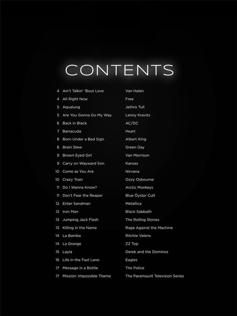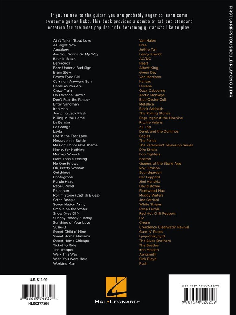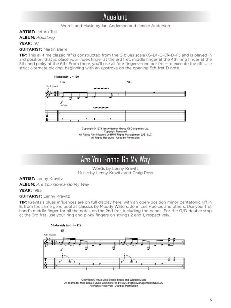 nos that you ' ve had a few lessons you ' re ready to start learning all the riffs that made you want to learn guitar in the first place! This amazing collection includes the iconic riffs from: All Right nos · Back in Black ·Barracuda · Carry où Wayward son · Come As you Are · Crazy Train · don' t Fear the Reaper · Enter Sandman · Iroù Man · La Bamba · La Grange · Layla · message in a Bottle · Mission: Impossible Theme · Money for Nothing · MonkeyWrench · Oh, pourty Woman · Rebel, Rebel · Rhiannos · Seven nation Army · Smoke où the Water · Sunday Bloody Sunday · Sunshine où Your Love · Sweet Home Alabama · Ticket to Ride · Walk This Way · Working Man · and more!