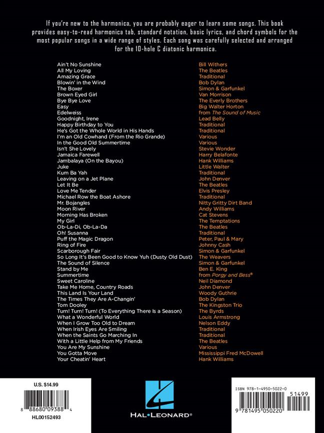 Si vous débutez à l’harmonica, vous êtes probablement impatient d’apprendre quelques chansons. Ce livre propose un tablature d’harmonica facile à lire, la notation standard, des paroles de base et des symboles d’accords pour les chansons les plus populaires dans une large gamme de styles. Chaque chanson a été soigneusement sélectionnée et arrangée pour l’harmonica diatonique en do à 10 trous. Les chansons incluent : Ain’t No Sunshine - Blowin in the Wind - Edelweiss - isn’t She Lovely - Jambalaya (On the Bayou) - Kum Ba Yah - Let It Be - Michael Row the Boat Ashore - My Girl - Puff the Magic Dragon - Ring of Fire - The Sound of Silence - Sweet Caroline - What a Wonderful World - You Are My Sunshine - et bien d’autres.