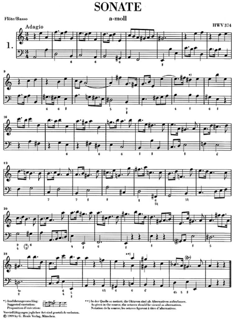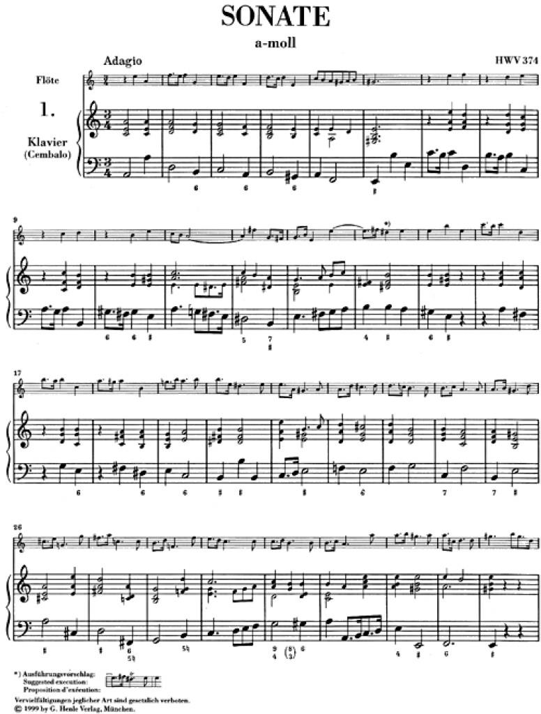 Le fait que les trois sonates dites «de Halle» n’aient pas toutes été composées au cours de la jeunesse de Haendel à Halle n’enlève rien à la faveur dont elles jouissent. Comme on ne dispose que de très peu d’informations sur ces sonates et que certains éléments stylistiques indiquent qu’il pourrait s’agir d’oeuvres de jeunesse, elles ont été attribuées par le passé à ses années de jeunesse dans cette ville. Cependant, il a été établi entre temps qu’au moins la sonate en mi mineur a été composée à Londres. L’édition Urtext propose d’une part deux exemplaires de la double partition flûte/basse continue afin que les deux musiciens, flûtiste et accompagnateur, puissent jouer àpartir de cette partition combinée. D’autre part, la partition s’accompagne non seulement de la basse chiffrée, mais également d’une basse continue entièrement réalisée, historiquement fidèle et jouable à vue.