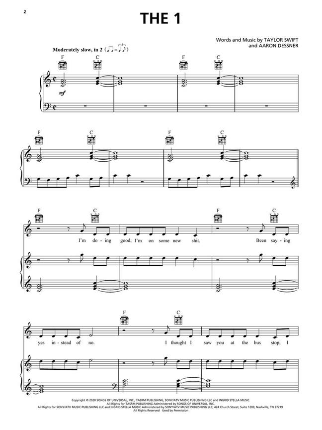 17 songs from Swift's 2020 surprise release of piano and guitar tunes which she wrote and recorded during the COVID-19 pandemic. Songs include: Betty · Cardigan · Exile (feat. Bon Iver) · Illicit Affairs · The Lakes · The Last Great American Dynasty · Mad Woman · The 1 · Peace · and more.