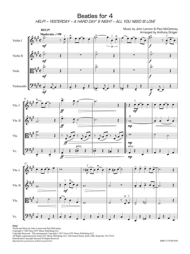 Dans l'histoire de la pop et du rock, aucun groupe n'a autant marqué les esprits que les Beatles dans les années 1960. Ce medley pour quatuor à cordes regroupe quatre chansons représentant l'individualité de ces quatre musiciens : du puissant Help ! en passant par le romantique Yesterday et le classique du rock A Hard Day's Night jusqu'à l'hymne All You Need Is Love.