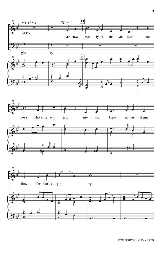 Utilisations : Général, Missions, Justice sociale Écritures : II Samuel 22:2, Isaïe 52:7, Marc 13:26, Romains 1:15 Cet hymne original engage immédiatement à la fois le cœur et l’âme ! Des paroles élevées de défi issues des écritures ont une application moderne et sont élevées haut sur les ailes d’un thème magnifique. Le style ballade puissante est parfaitement choisi pour le rythme de ces paroles, et un crescendo naturel de but anime l’arc de l’arrangement. Un accompagnement au piano bienveillant permet de réussir avec des directions vocales réfléchies et des modulations clairement définies, et l’orchestration optionnelle est véritablement inspirée. Score and Parts (fl 1-2, ob, cl 1-2, bn, hn 1-2, tpt 1-3, tbn 1-2, TBA 1-2, à confirmer, hp, bells, chm, timp, perc, vn 1-2, va, vc, db) disponible en téléchargement numérique.