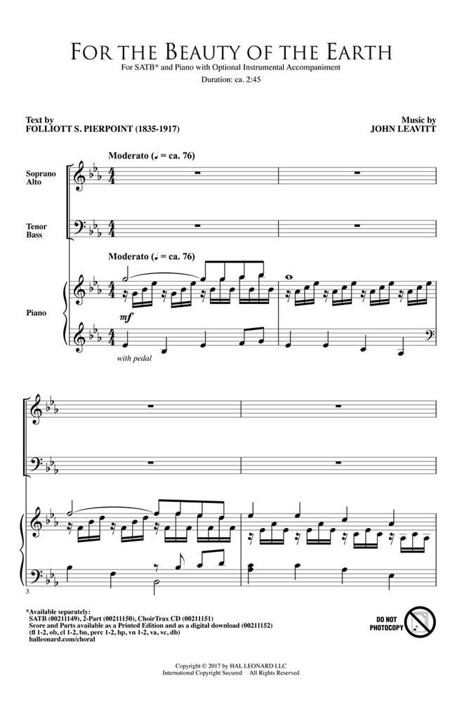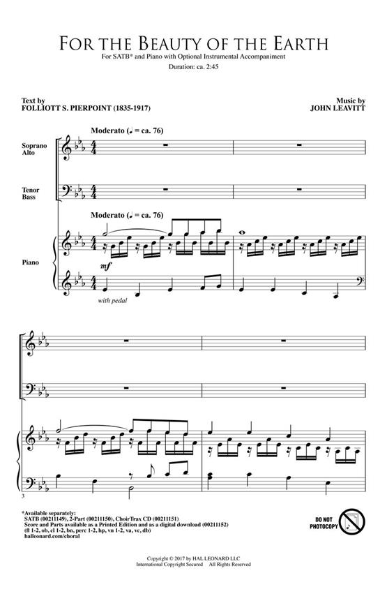 For the Beauty of the Earth PIERPOINT FOLLIOTT SANDFORD / LEAVITT JOHN
