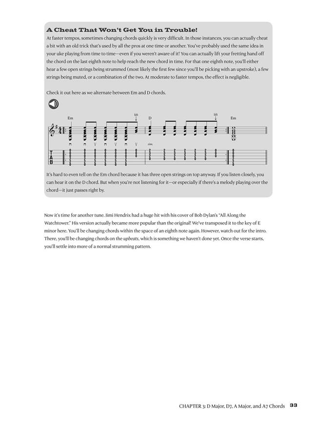 With the approach covered in this book, you'll take advantage of all the skills you've already developed on your four-string miniature friend and learn how they can be applied to the six-string world with real songs.