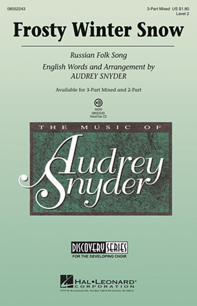 Vous serez ravi par les paysages et sons hivernaux que cette chanson folklorique russe étincelante évoque en célébrant la première chute de neige de l’hiver ! Interprétez-la en anglais ou avec un texte russe très court et facile à apprendre, ce sera un choix idéal pour les programmes de vacances et d’hiver. Disponible séparément : mixé en 3 parties, en 2 parties, VoiceTrax CD.