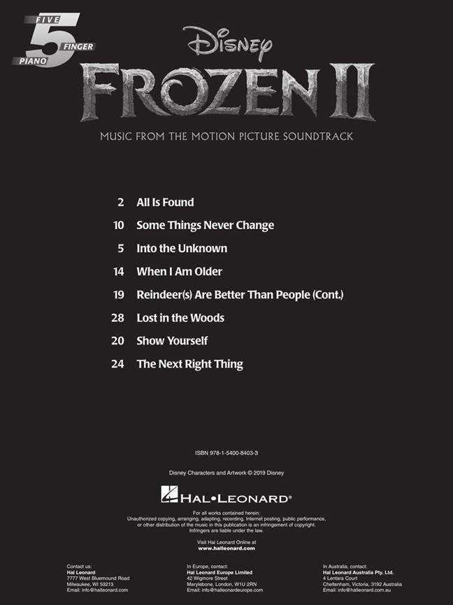 The sequel to the uber-popular Disney film Frozen is here, and the soundtrack features more songs from Robert Lopez and Kristen Anderson-Lopez. Our matching songbook includes easy arrangements with lyrics to the new breakout song "Into the Unknown - ” a continuation from the first film, "Reindeers Are Better Than People - ” and 6 more new songs.