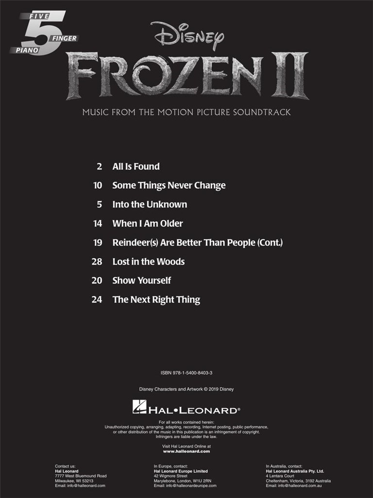 Frozen II – Five Finger Piano (La reine des neiges 2) ANDERSON-LOPEZ KRISTEN / LOPEZ ROBERT