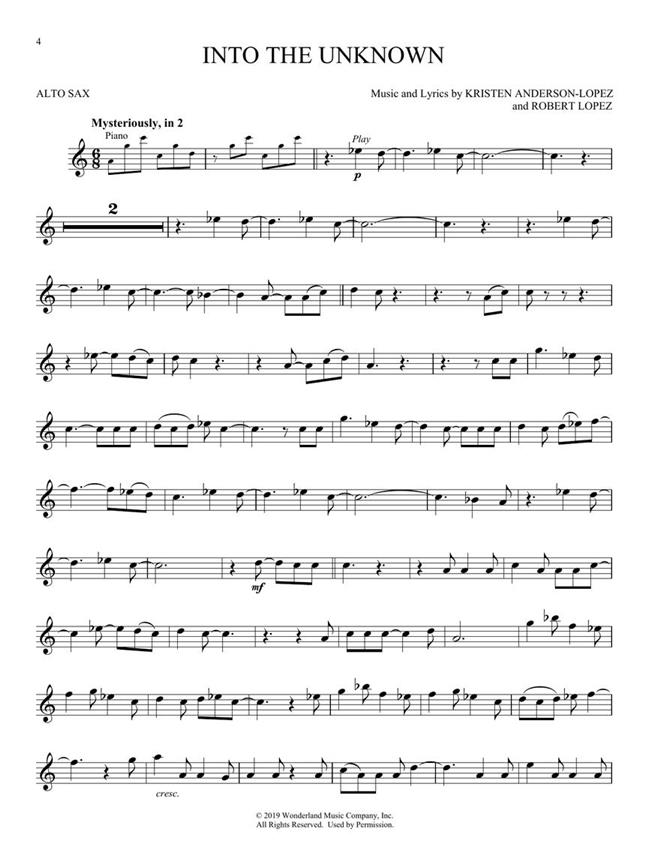 Solo arrangements for 8 tunes from the 2019 sequel to Disney's mega-hit movie Frozen are featured in this collection perfect for budding instrumentalists. It features online access to audio demonstration tracks for download or streaming to help you hear how the song should sound. Songs include: