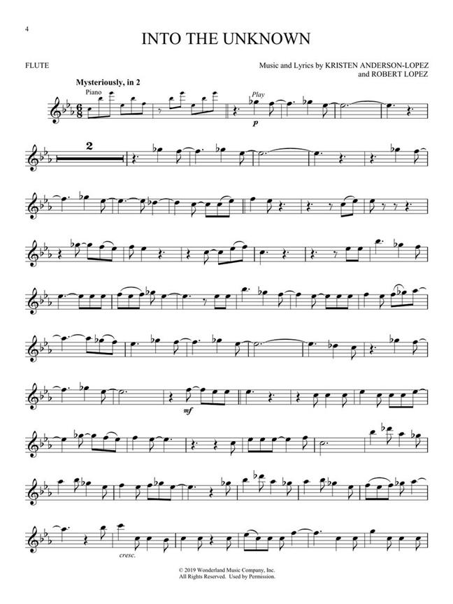 Des arrangements solo de 8 morceaux de la suite de 2019 du méga-succès Disney La Froison figurent dans cette collection, parfaite pour les instrumentistes en herbe. Il propose un accès en ligne aux pistes audio de démonstration à télécharger ou à diffuser en streaming pour vous aider à comprendre comment la chanson doit sonner.