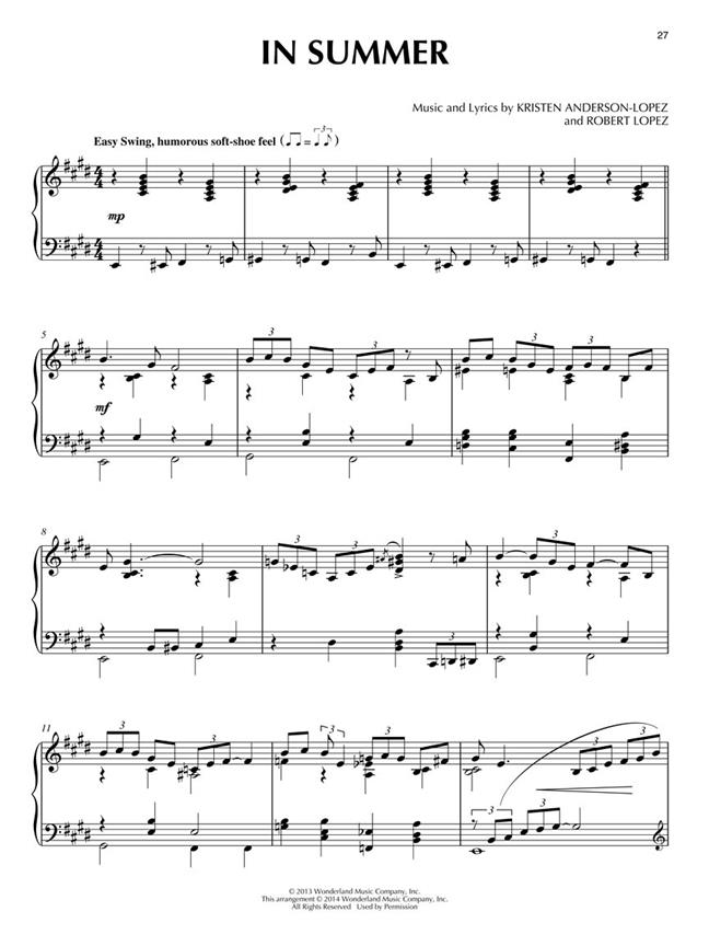 Retrouvez une sélection des plus beaux moments musicaux tirés du film en transcriptions piano solo niveaux intermédiaire. Titres : Do You Want To Build A Snowman? - Fixer Upper - For The First Time In Forever - Frozen Heart - Heimr Arnadalr - In Summer - Let It Go - Love Is An Open Door - Reindeer(s) Are Better Than People - Vuelie