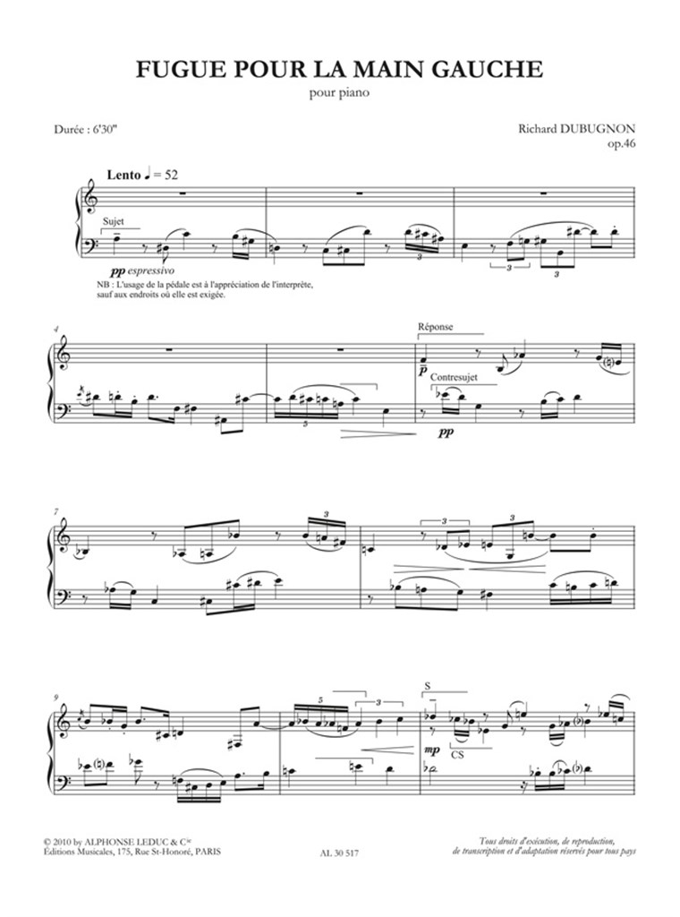 Fugue Pour La Main Gauche DUBUGNON RICHARD