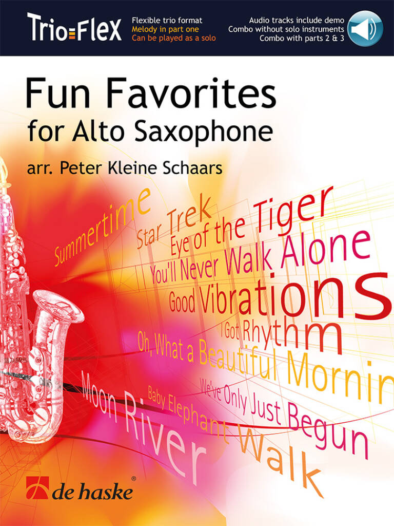 Peter Kleine Schaars a arrangé dix morceaux orientés grand public, de styles et de genres variés, pour trois instruments à vent. Il y a plusieurs options de jeu : jouer la ligne mélodique avec l'accompagnement du combo seul, jouer la ligne mélodique avec la version combo + voix 2 et 3 ou encore former un trio avec deux amis jouant du même instrument et swinguer avec les musiciens du combo. Quelle que soit l'option choisie, vous ferez sensation auprès du public!