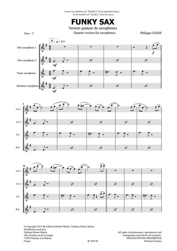 Funky Sax Pour Quartet SATB GEISS PHILIPPE