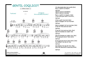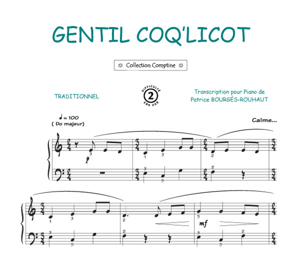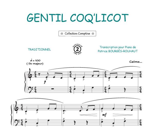 Gentil Coq'licot - (Collection Comptine) Arrangement Piano - 1+ feuillet pour paroles - niveau : Très facile