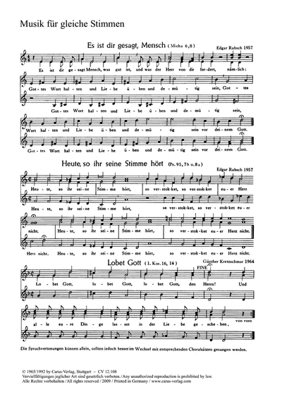 Gloria (SSAA) Et In Terra Pax (SSAA) Laudamus Te (SA) Domine Deus (unison) Quoniam tu Solus Sanctus (SSAA) Cum Sancto Spiritu (SSAA)
