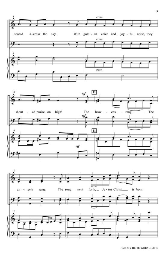 Utilisations : Écriture de Noël : Ésaïe 9:6-7, Luc 2, Jean 1:1-14, Philippiens 2:1-11 La proclamation angélique est célébrée avec des ornements mélodiques confiants et des harmonies classiques dans cet hymne majestueux de saison. Une approche forte et jubilatoire apporte à la pièce une sensibilité presque classique, tandis que de solides harmonies à quatre voix emplissent l’air d’un son riche et satisfaisant. L’apparition de While Shepherds Watched Their Flocks est un moment délicieux, et la courte durée de représentation en fait une ouverture très efficace.