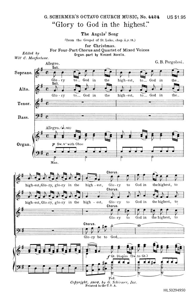 Glory To God In The Highest Organ PERGOLESI GIOVANNI BATTISTA