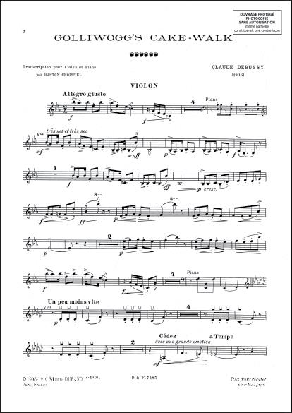 Golliwogg’s Cake-Walk Violon/Piano (Gaston Choisnel) DEBUSSY CLAUDE
