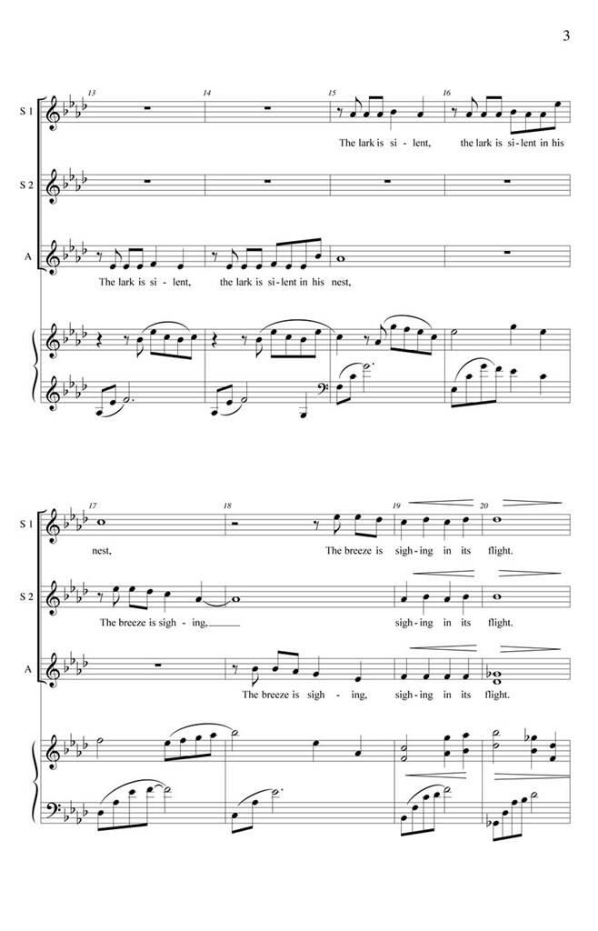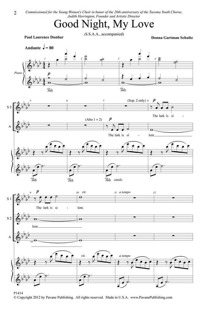 Avec la poésie artistique de Paul Laurence Dunbar, cette bénédiction musicale rend la séparation, pour quelque raison que ce soit, une entreprise digne. Ce cadre pour les voix SSAA est particulièrement adapté aux chorales de lycée, d’université et communautaires.
