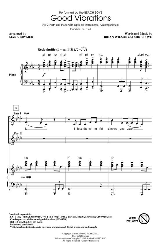 Classée par le magazine Rolling Stone parmi les 500 meilleures chansons rock de tous les temps, Good Vibrations est un classique du rock. Cet arrangement s’appuie sur le groove rock shuffle joyeux et les progressions harmoniques désormais légendaires de la musique des Beach Boys.