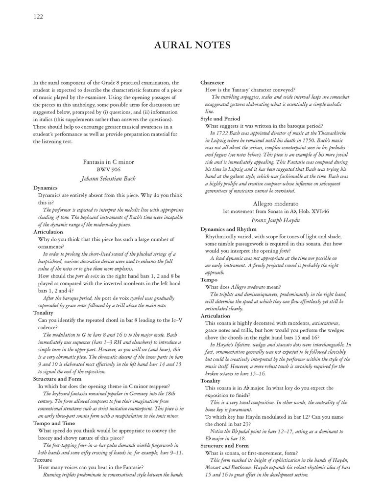 Aural notes by Caroline Evans (EP Aural Test Survival Guidebooks)