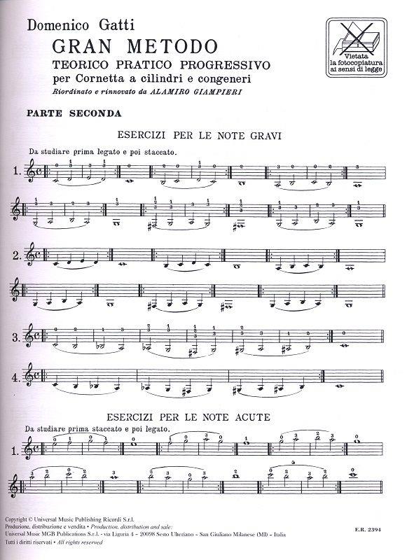 Gran Metodo Teorico Pratico Progressivo Per Cornetta A Cilindri E Congeneri – Parte Seconda GATTI DOMENICO
