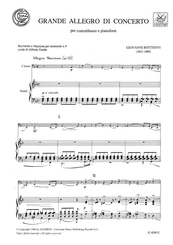 Grande Allegro Di Concerto Per Contrabbasso E Pianoforte BOTTESINI GIOVANNI