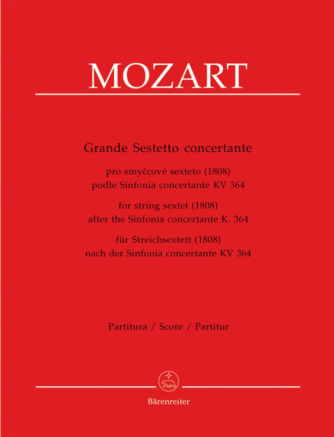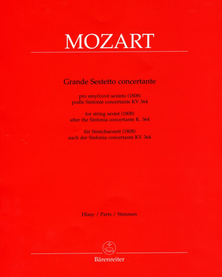 For String Sextet (2 Violins, 2 Violas, 2 Cellos, Bass) set of parts. Mozart ’s Sinfonia Concertante for Violin and Viola, K. 364 (320d), is his only complete surviving work in this genre. He wrote it in 1779 after returning from Paris and Mannheim. For two decades it was known only in a few copyists’ manuscripts. The first edition did not appear until 1802. The work achieved great popularity that same year, particularly the arrangements for Piano four-hands and Piano trio. This arrangement for String Sextet, dating from 1808, is interesting not only for its unusual scoring but also for the way the two concertante instrumentsinteract with the other strings. This edition revives this arrangement after almost two centuries, drawing primarily on the sole surviving source: the first edition in parts, published by the Vienna Stamperia Chimica in 1808. The editor, Christopher Hogwood, recounts the history of the work and the particulars of the arrangement in a trilingual preface (Eng . / Ger. / Cz . ) and a critical report. Barenreiter's new edition takes into account both the original print and the text from the “New Mozart Edition”. New edition of a historical transcription for String Sextet (1808) Available in print again after almost two centuries Also suitable for Chamber Orchestra Detailed preface and critical report (Eng. /Ger. / Cz . ) Includes facsimiles