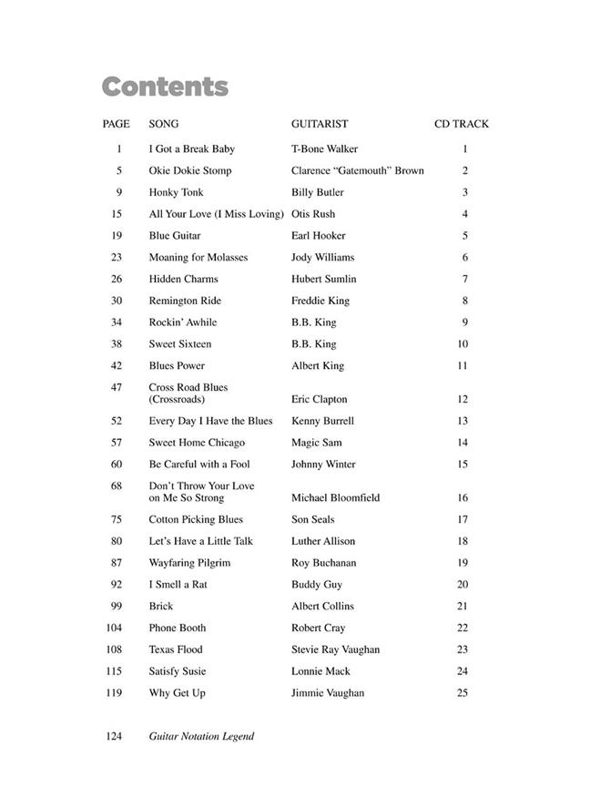 Magic Sam et les trois rois d'Eric Clapton et les frères de Vaughan, prenez un intérieur regarder la genèse de la guitare Blues. Ce livre et CD recueil fournit des transcriptions solos en notation standard et des tablatures, des leçons sur la façon de jouer leur, biographies de guitariste, équipement, photos, histoire et bien plus encore. Le CD accompagne contient plein-bande démonstrations de chaque solo de guitare dans le livre. Pour les utilisateurs PC et Mac, le CD est amélioré avec le logiciel Downer lenteur incroyable donc vous pouvez ajuster l'enregistrement à tout tempo sans changer de brai ! Remarque : seuls les solos sont notées, ne remplissez pas des chansons.
