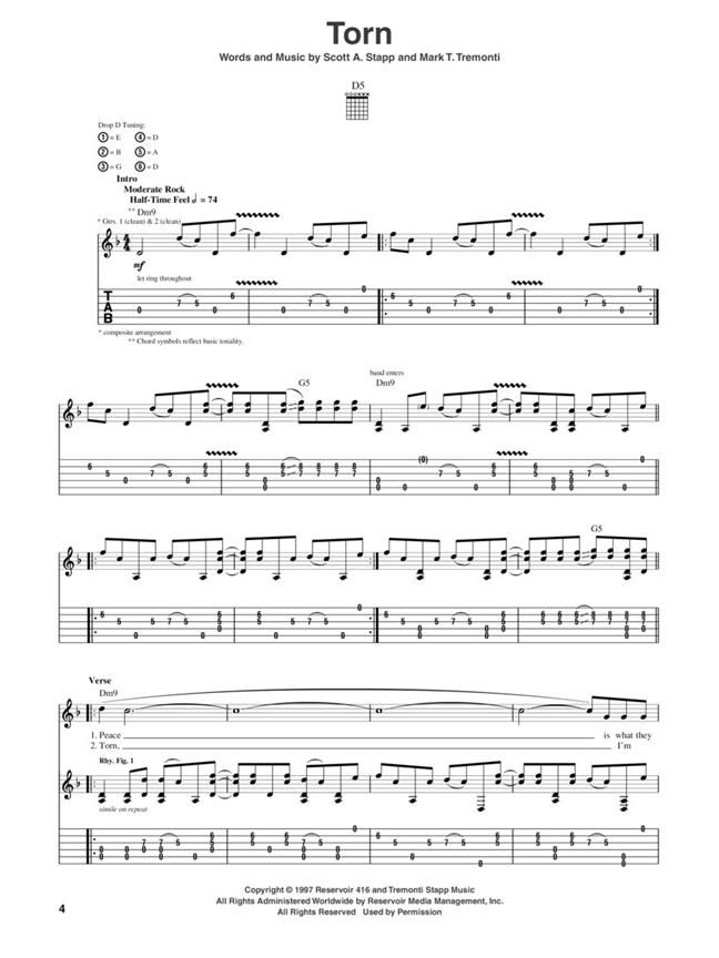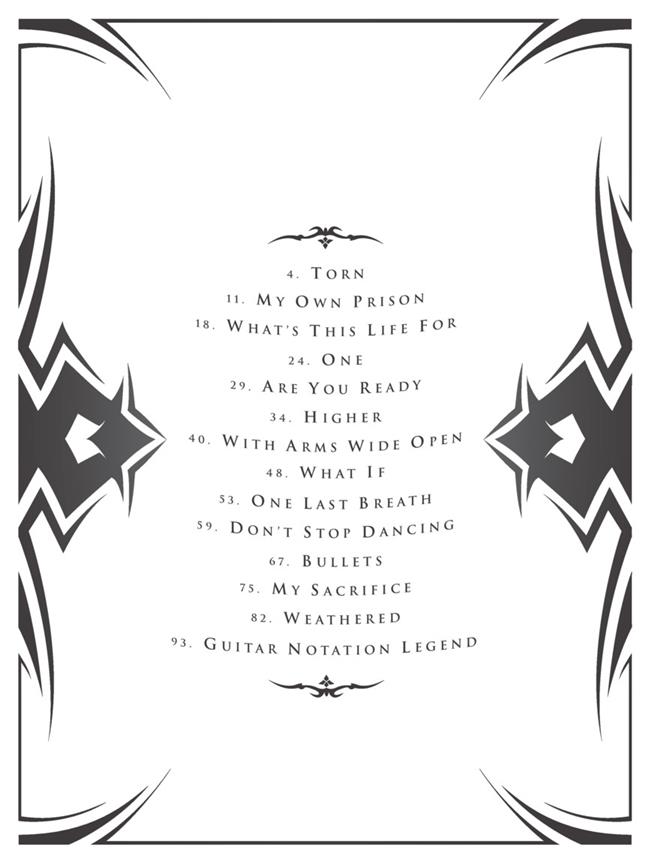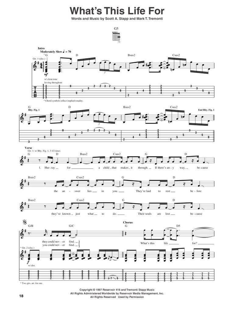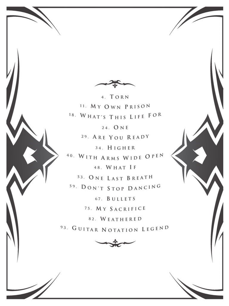 13 authentic guitar transcriptions of Mark Tremonti's work with Creed, presented in notes and tablature.