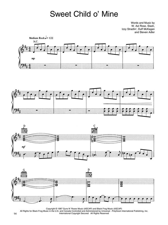 14 rock anthems from the great GN'R, in artist-approved P/V/G arrangements