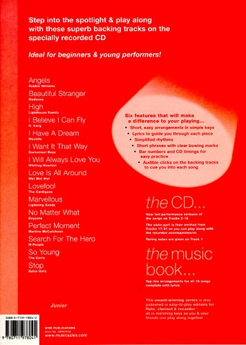 Junior Guest Spot est idéal pour les débutants et les jeunes artistes. Jouez ces quinze tubes dans des arrangements de lignes mélodiques faciles par Paul Honey, avec des pistes d’accompagnement spécialement enregistrées. Les arrangements sont courts et simplifiés, utilisant des tonalités et des rythmes simples, avec de courtes phrases et des marques claires d’archet. Le CD accompagnant contient des versions complètes des chansons des pistes 2 à 16, la partie instrumentale est ensuite omise des pistes 17 à 31, afin de vous permettre de jouer en solo.