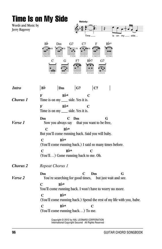 35 chansons populaires des Rolling Stones avec seulement les paroles, les symboles d’accords et les diagrammes d’accords de guitare.