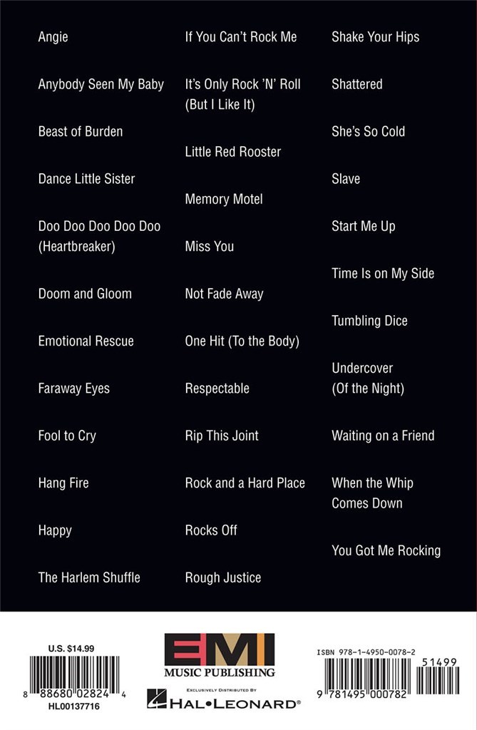 Inclut : Angie, Beast of Burden, Dance Little Sister, Faraway Eyes, The Harlem Shuffle, It’s Only Rock 'n' Roll (But I Like It), Little Red Rooster, Miss You, Not Fade Away, One Hit (To the Body), Respectable, Start Me Up, Time Is For My Side, Waiting for a Friend, You Got Me Rocking et plus encore.