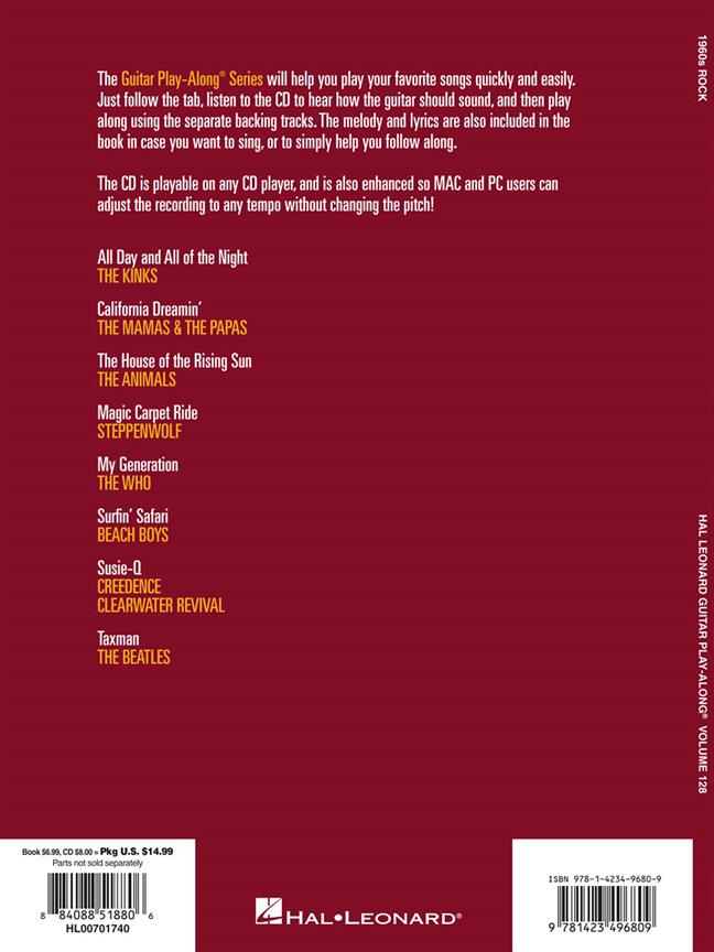 Le jouer de la guitare-Along série vous aidera à jouer vos chansons préférées rapidement et facilement! Il suffit de suivre la liste des onglets, le CD pour entendre comment la partie de guitare, et ainsi jouer en utilisant les pistes d'accompagnement séparée. La mélodie et les paroles sont donc inclus dans le livre au cas où vous voulez chanter, ou tout simplement pour vous aider à suivre. Le CD audio est jouable sur n'importe quel lecteur CD. Pour les utilisateurs PC et Mac, le CD est fourni pour vous permettre d'ajuster la à n'importe quel tempo sans changer la hauteur!