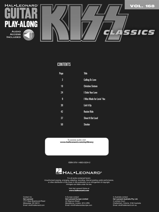 Guitar Play Along Vol.168 : Kiss KISS