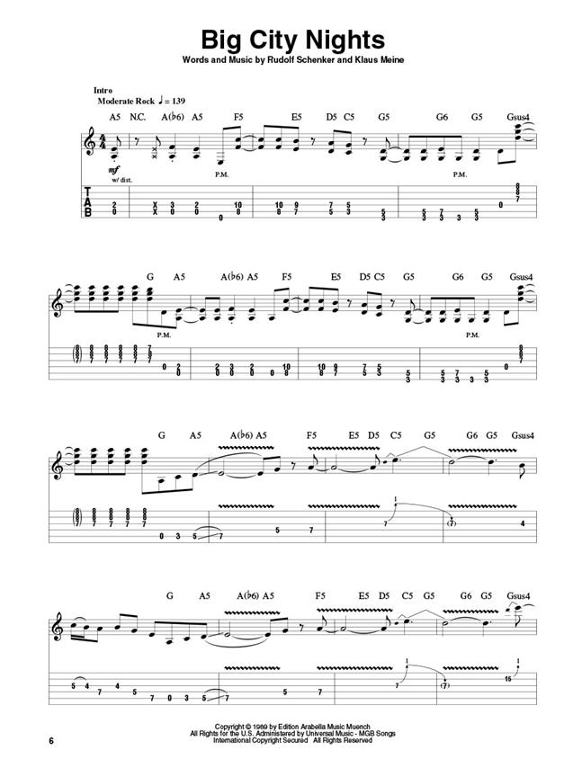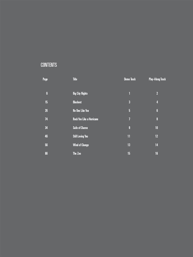 Guitar Play-Along Volume 174 : Scorpions comprend des partitions pour Big City Nights, Sails of Charon, Wind of Change et bien d’autres.