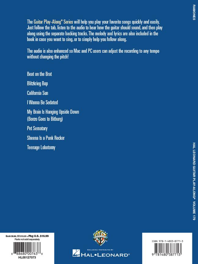 La collection Guitar Play-Along vous permettra d'apprendre facilement et rapidement vos titres favoris. Suivez la tablatures en écoutant le CD qui contient une démo intégrale du morceau et un play back. Les utilisateur de Mac ou de PC pourront baisser le tempo sans changer de tonalité en jouant le CD sur leur ordinateur. La ligne mélodiques et les paroles sont incluses dans le recueil. Chaque recueil contient 8 titres d'un artiste ou d'un genre musical.