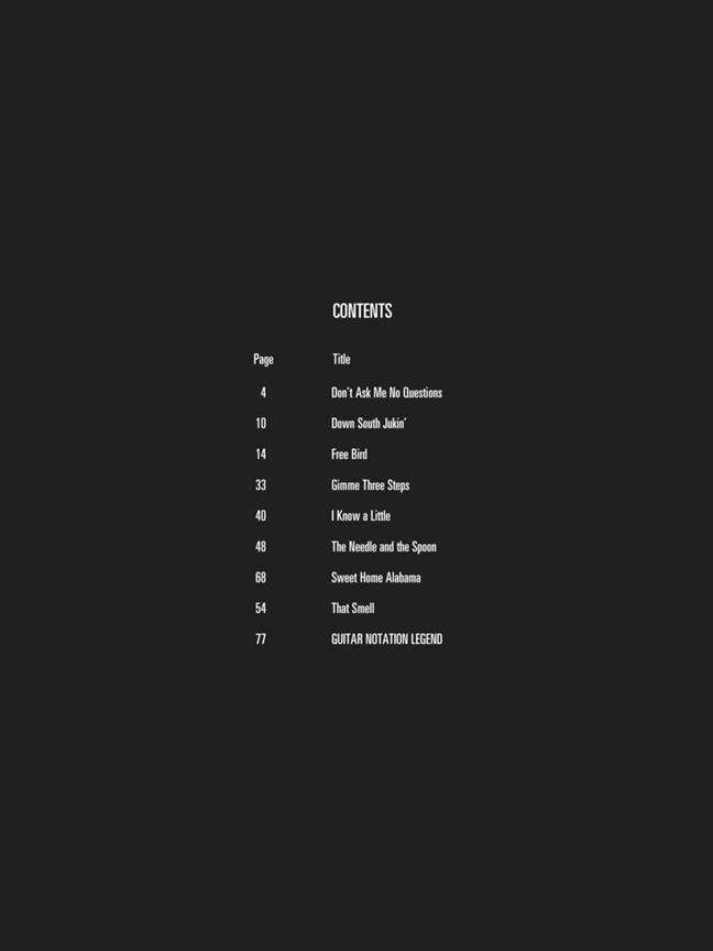 Ne demandez moi pas de questions - Down South Jukine - Free Bird - Gimme trois étapes - je sais un peu - odeur que de l'aiguille et la cuillère - Sweet Home Alabama -